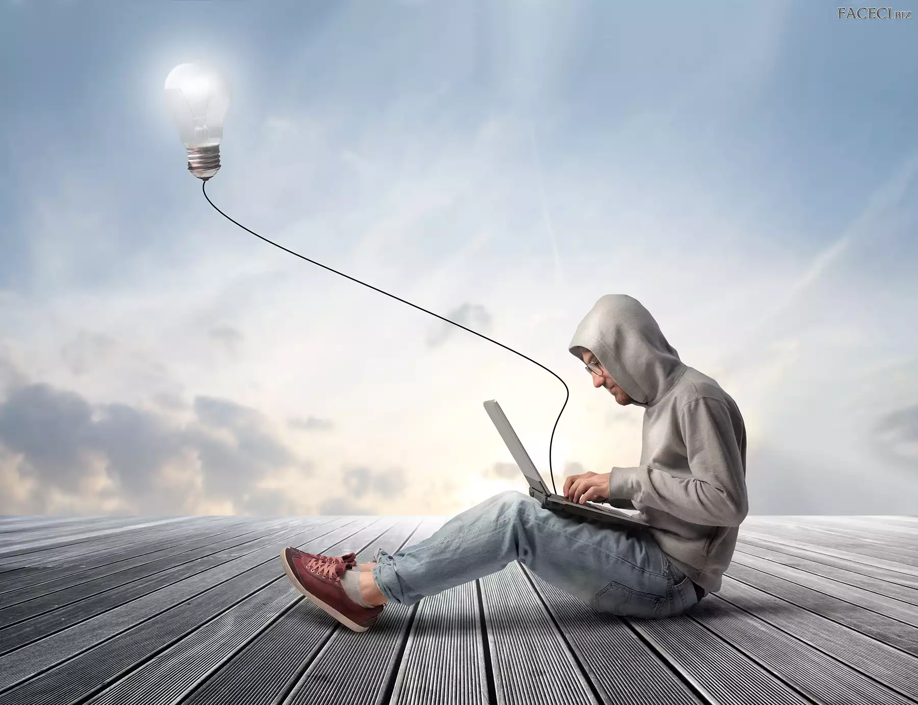 Mężczyzna, Żarówka, Abstrakcja, Laptop - faceci.biz